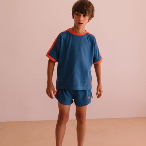 We Are Kids SS26 Taylor Bright Blue Set features a relaxed-fit tee and matching shorts with bold contrast details, perfect for everyday summer wear. Available now at Togs Moments.
