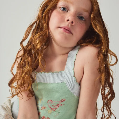 Soft knit girls set with delicate bird embroidery by Gingersnaps. Available now at Togs Moments.