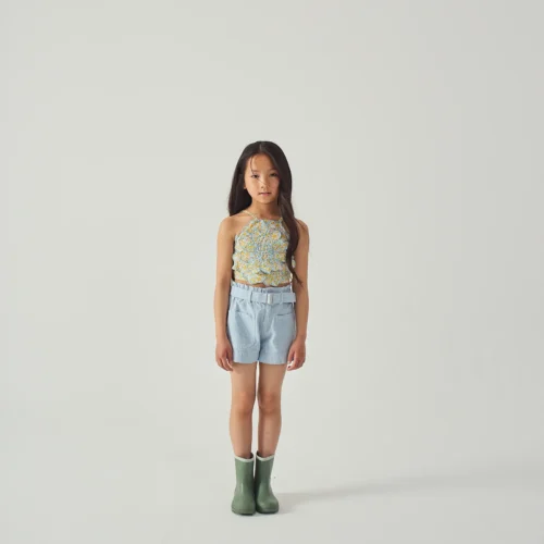Soft linen shorts in solid light blue with belt, perfect for clean, effortless summer styling. Available now at Togs moments.