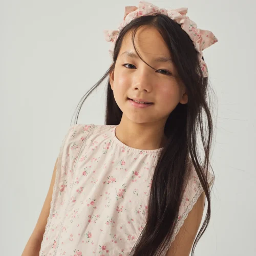 Gingersnaps SS26 Soft ruched headband with floral print and bow tie detail for a delicate finish. Available now at Togs Moments.