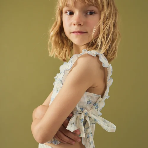 Gingersnaps SS26 Elegant sleeveless ivory top with soft sheer overlay and delicate textured finish. Available now at Togs Moments.