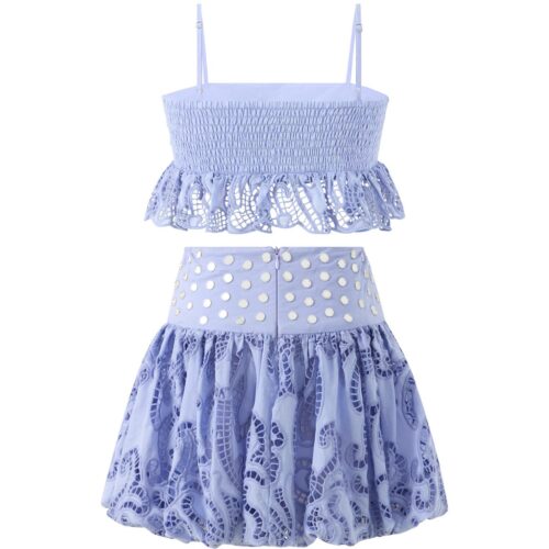 The Luciana Embroidered Bubble Set is a stylish two-piece girls’ outfit featuring delicate embroidery and elegant stud detailing. Designed with a cropped top and a playful bubble skirt, this charming set is perfect for parties, celebrations, and special occasions.