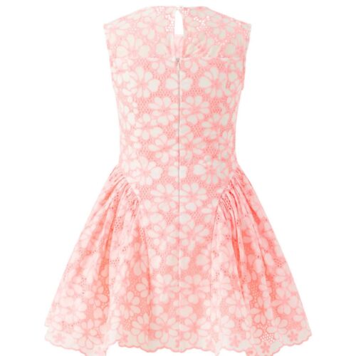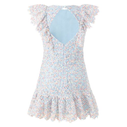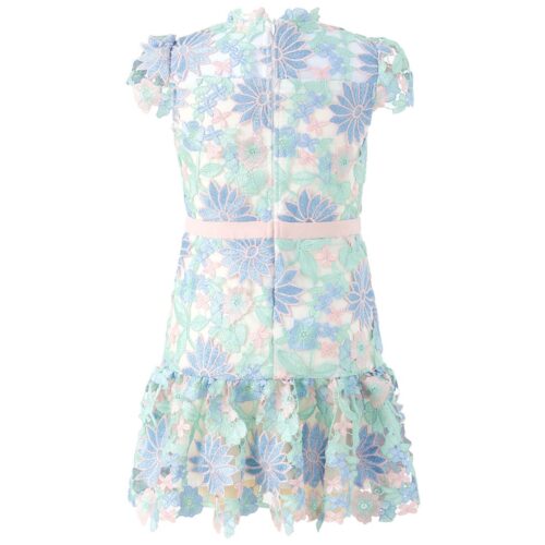 The Ryleigh Embroidered Mini Dress is a delicate girls’ occasion dress crafted from intricate lace with soft pastel embroidery. This elegant mini dress is perfect for parties, weddings, and special celebrations.
