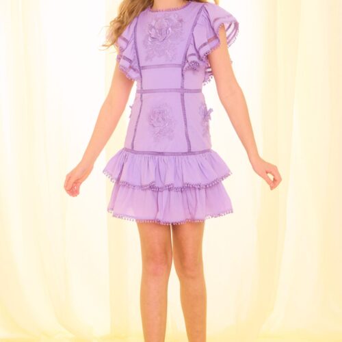 The Carloyn Frill Cotton Mini Dress is a beautiful lilac girls’ dress featuring delicate floral embroidery, soft cotton fabric, and elegant frill sleeves. This dress is perfect for parties, celebrations, and special occasions.