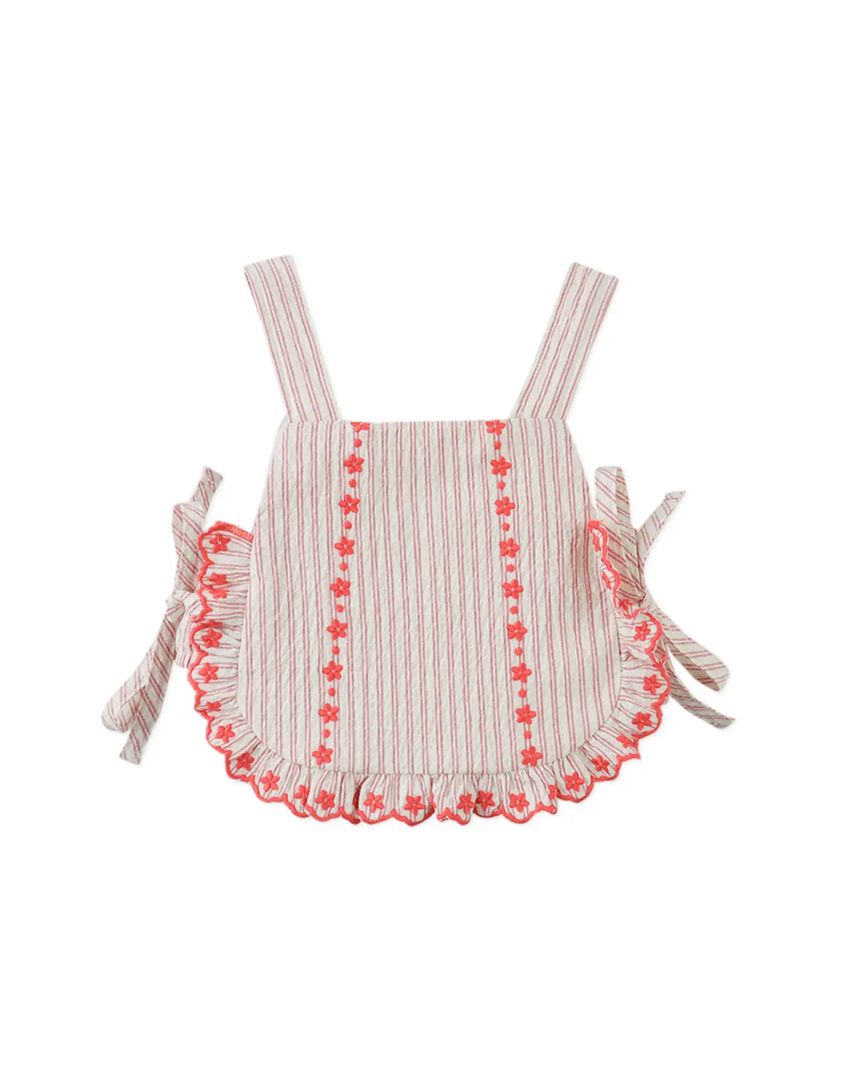 The Baby Juria Set is a beautifully detailed summer outfit designed for comfort and charm. Featuring a soft striped fabric with delicate floral embroidery, this set brings a playful yet refined look to your little one’s wardrobe.