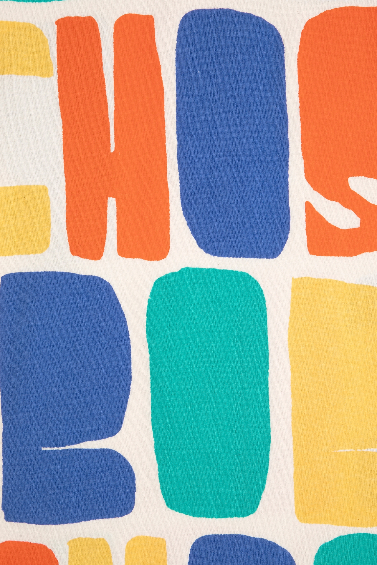 The vibrant all-over multicolor print features playful abstract shapes and large lettering that highlight the imaginative design language of Bobo Choses. The bright palette of blue, orange, yellow, and green creates a joyful statement piece that instantly elevates any kids outfit.