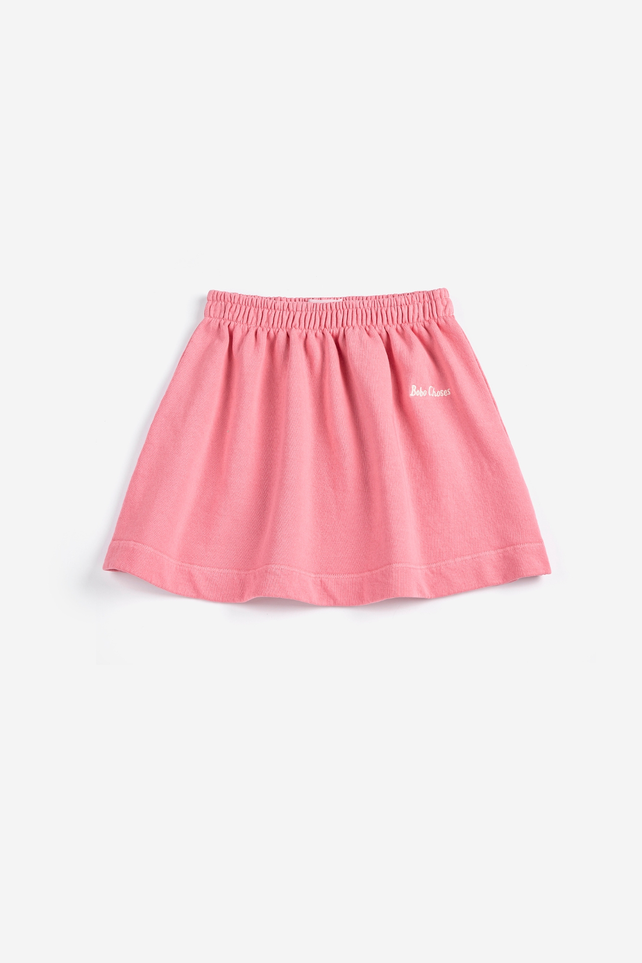 Designed in a cheerful pink tone, the skirt features a comfortable elastic waistband that allows easy movement while maintaining a secure fit. The minimal embroidered Bobo Choses logo adds a subtle designer touch, making it both stylish and versatile.
