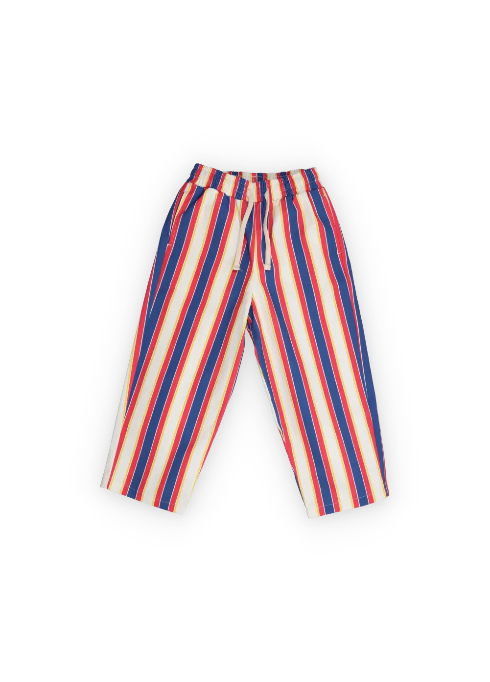 Pair the Gorse Pant – Gorse Stripes with a simple t-shirt or basic top to balance the bold pattern, or match with colorful pieces for a fun coordinated look.