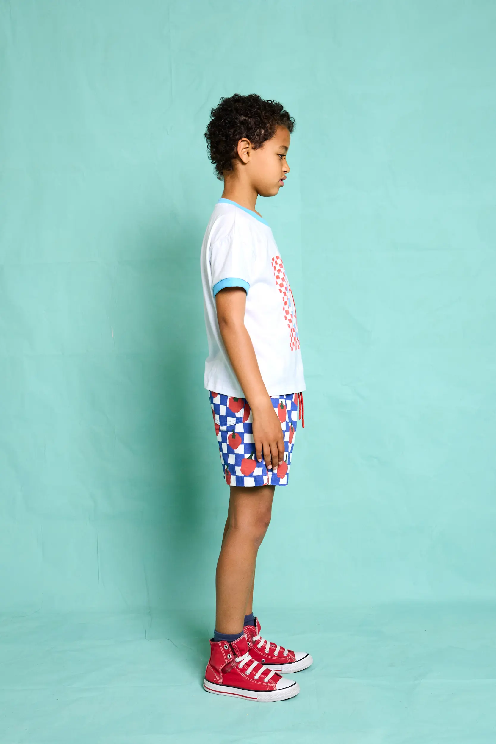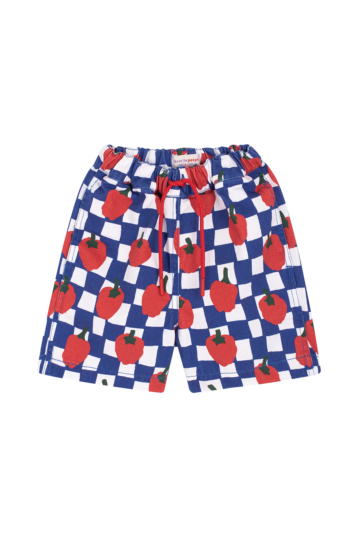 The Lacantina Boys Printed Shorts by Favorite People SS26 bring a bold and playful twist to summer dressing. Featuring a striking blue and white checkered pattern combined with vibrant red pepper prints, these shorts are designed to stand out while keeping a fun, effortless vibe.
