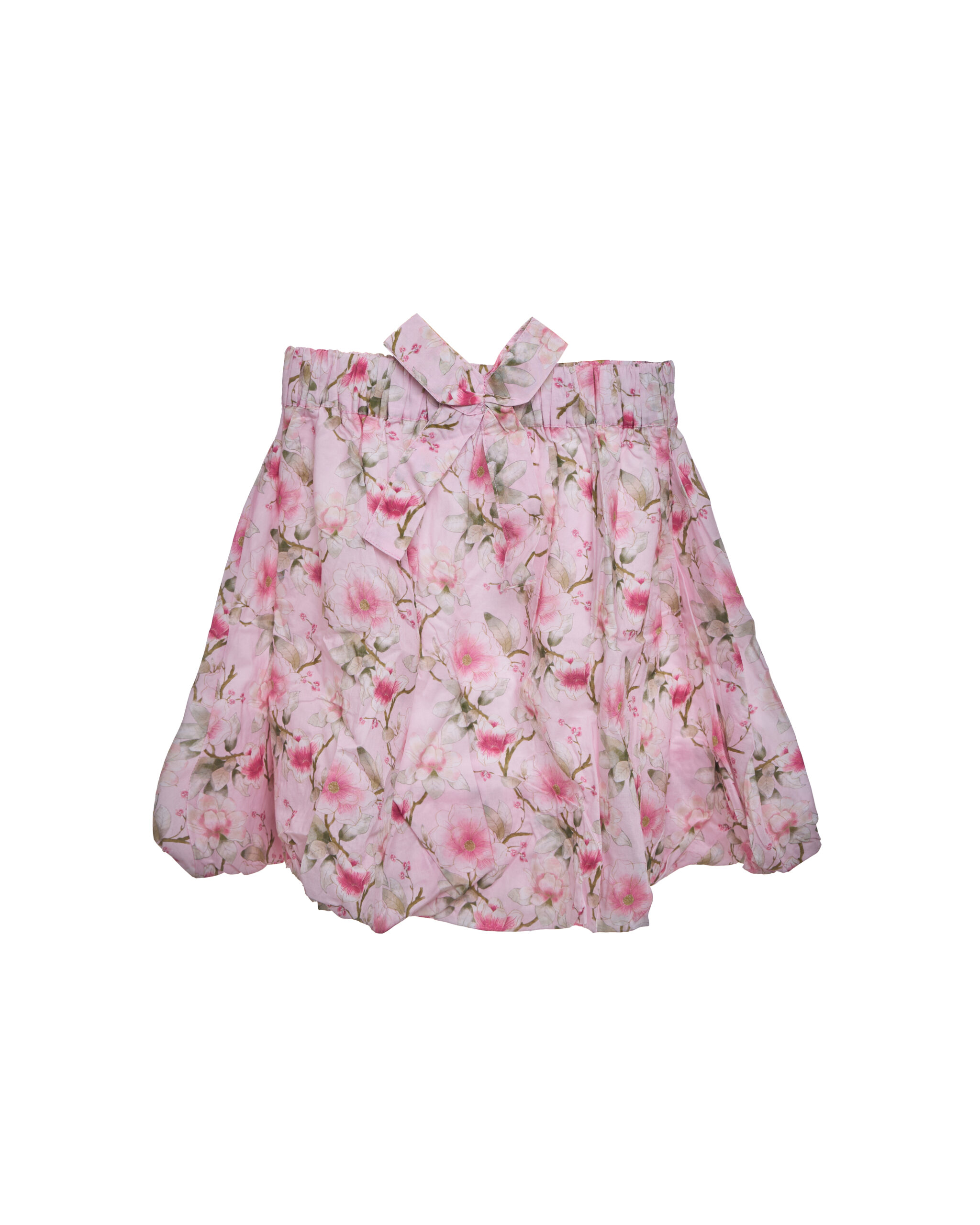 A playful yet elegant skirt with a unique bubble shape and soft floral design.