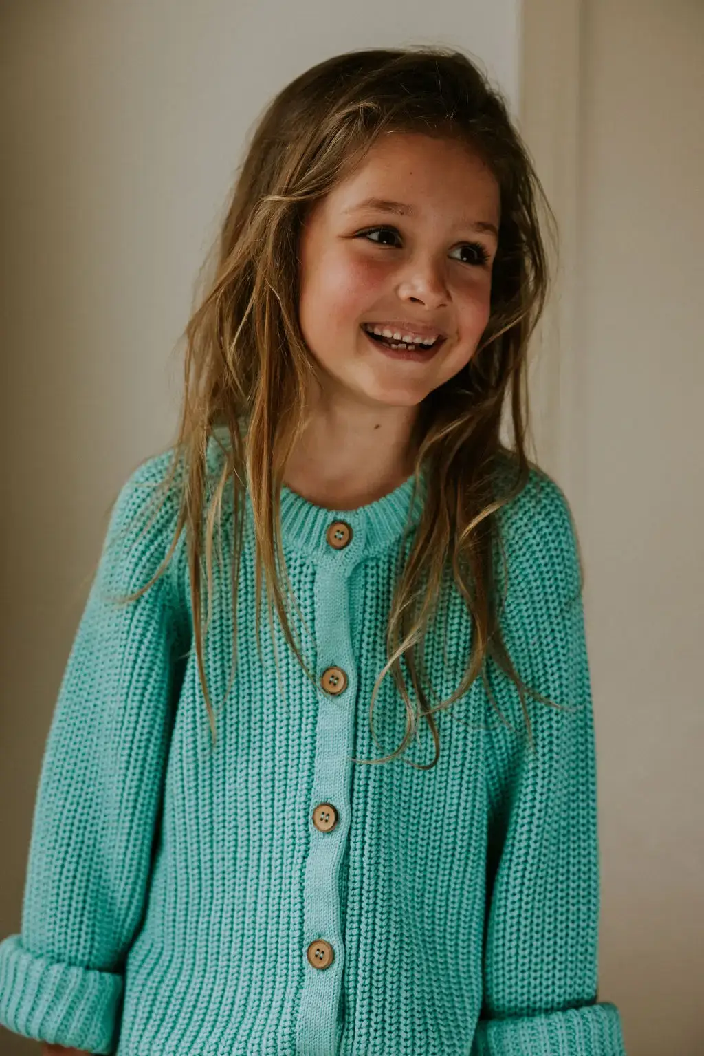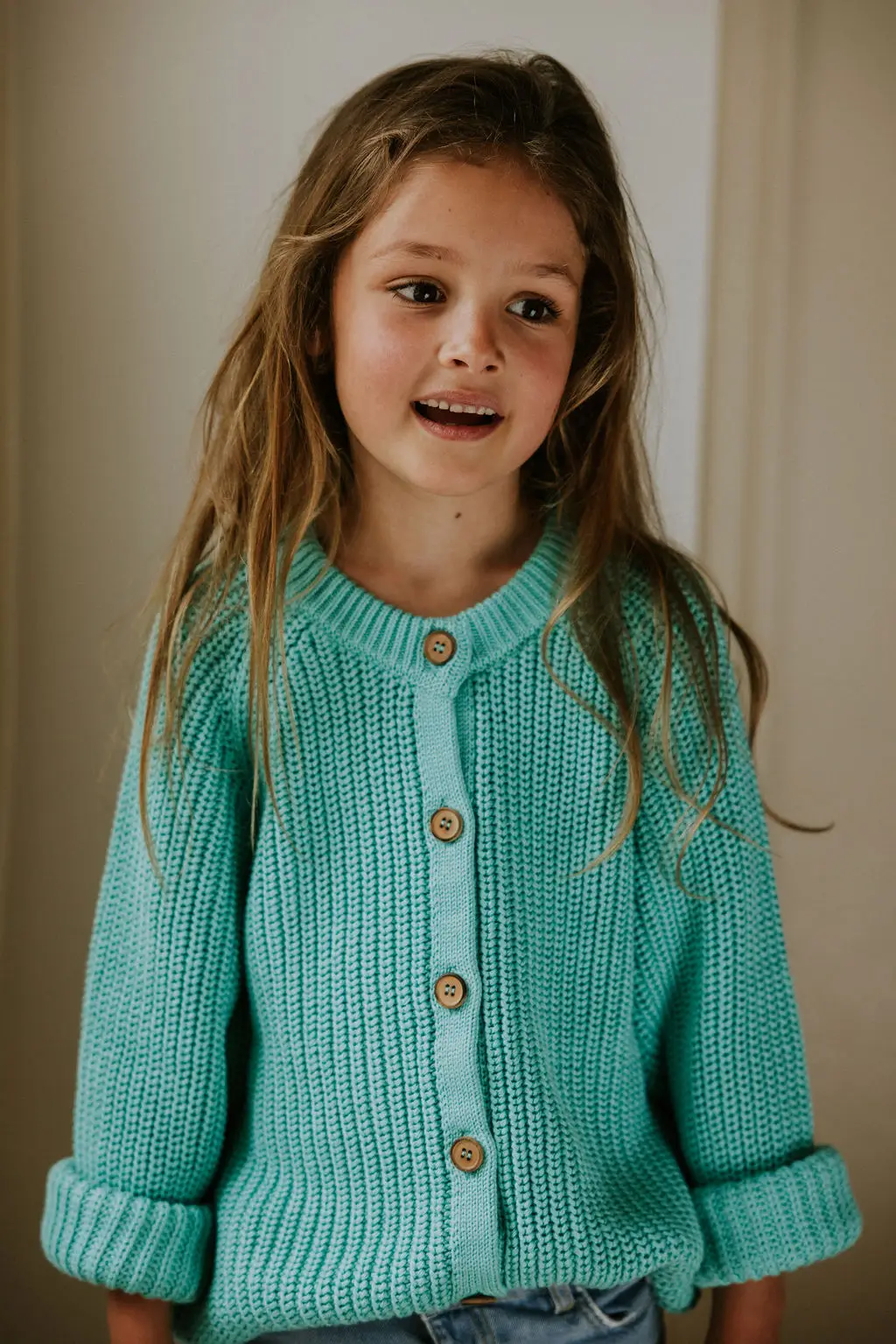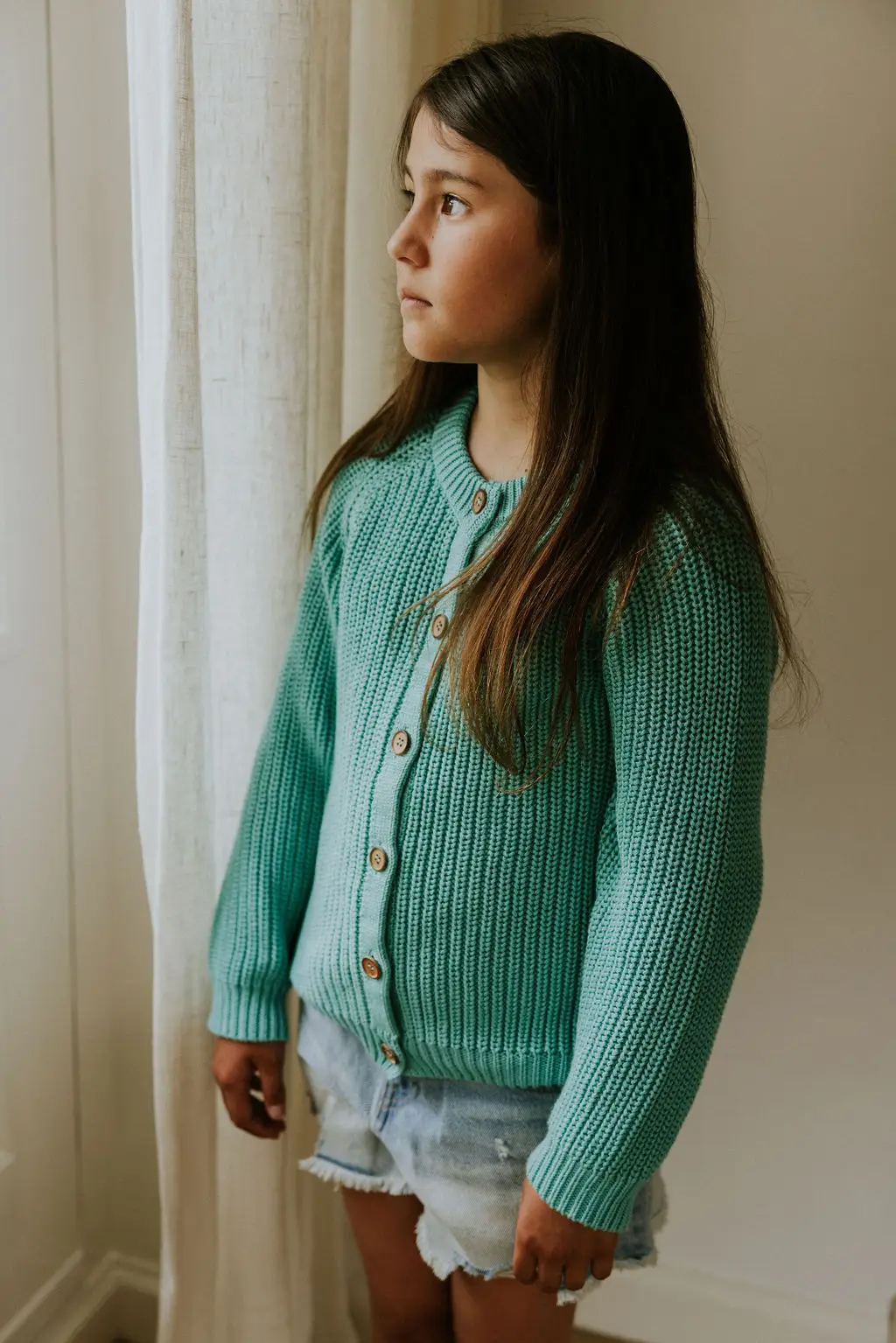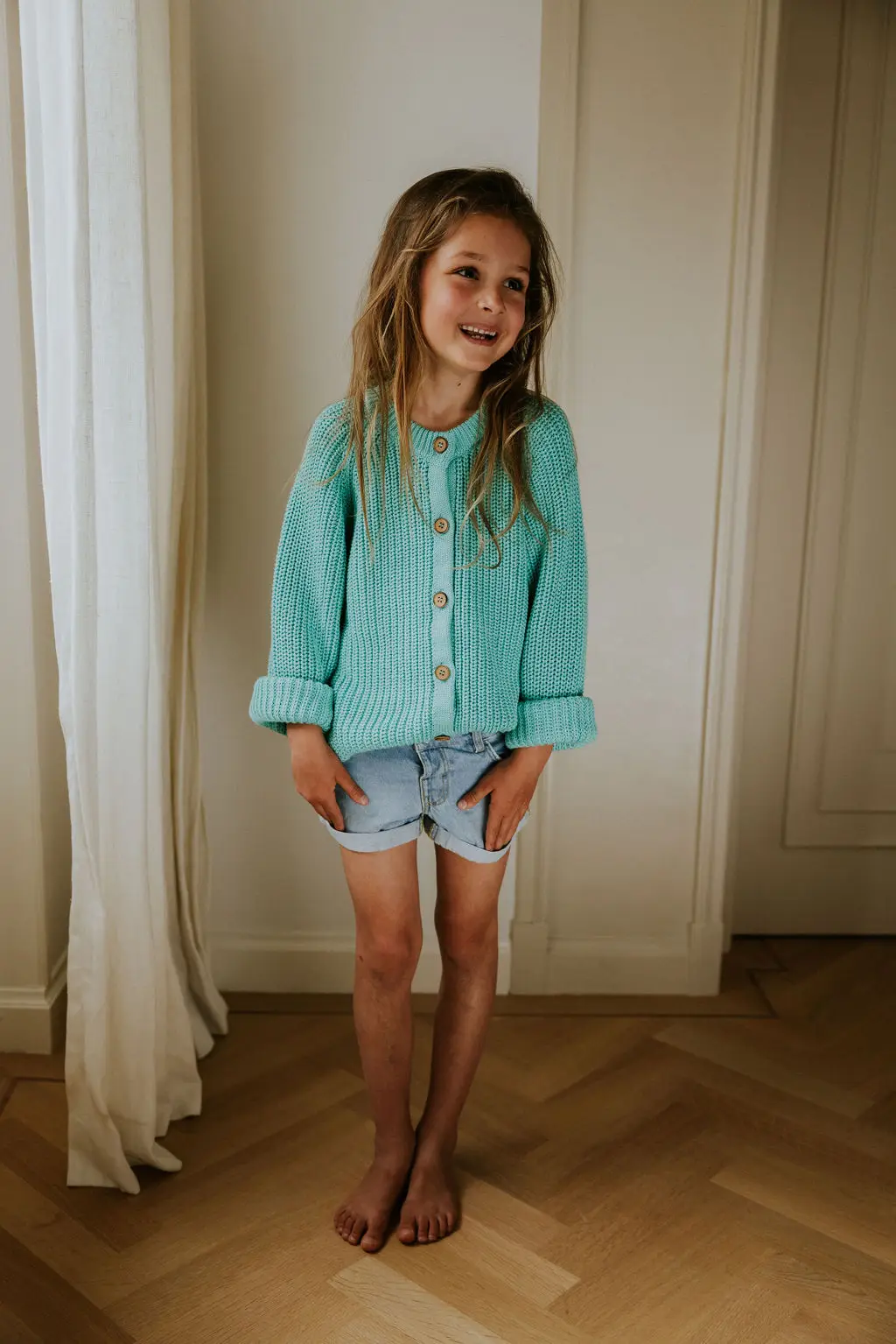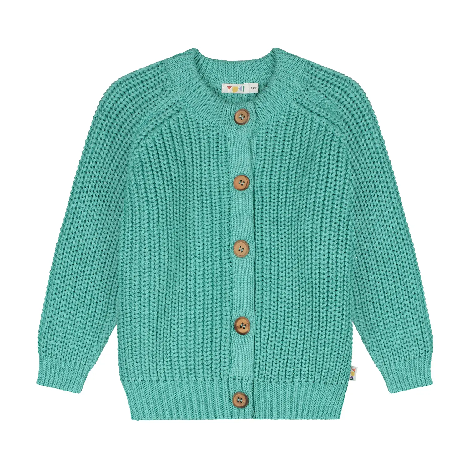 This unisex knitted raglan cardigan is made with 100% organic cotton and yarns that are Gots and Oekotex® certified. The cardigan has the typical raglan structure and a high neck. The wooden buttons and medium coarse stitch provide the cardigan with a refined and timeless look. Perfect for the little foresters and beachcombers among us. Yuki offers a minimalistic high-quality collection for those who believe in slow fashion.