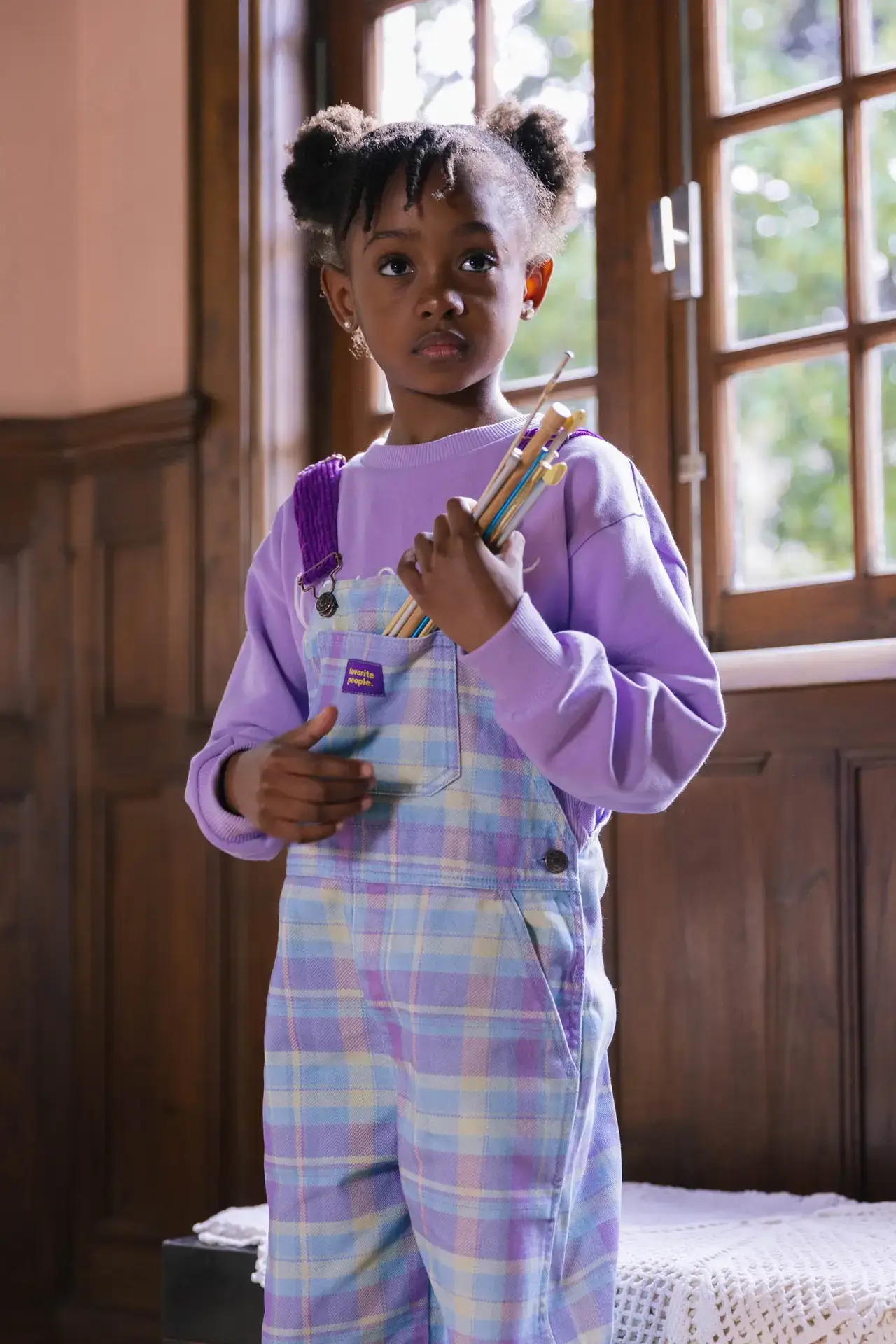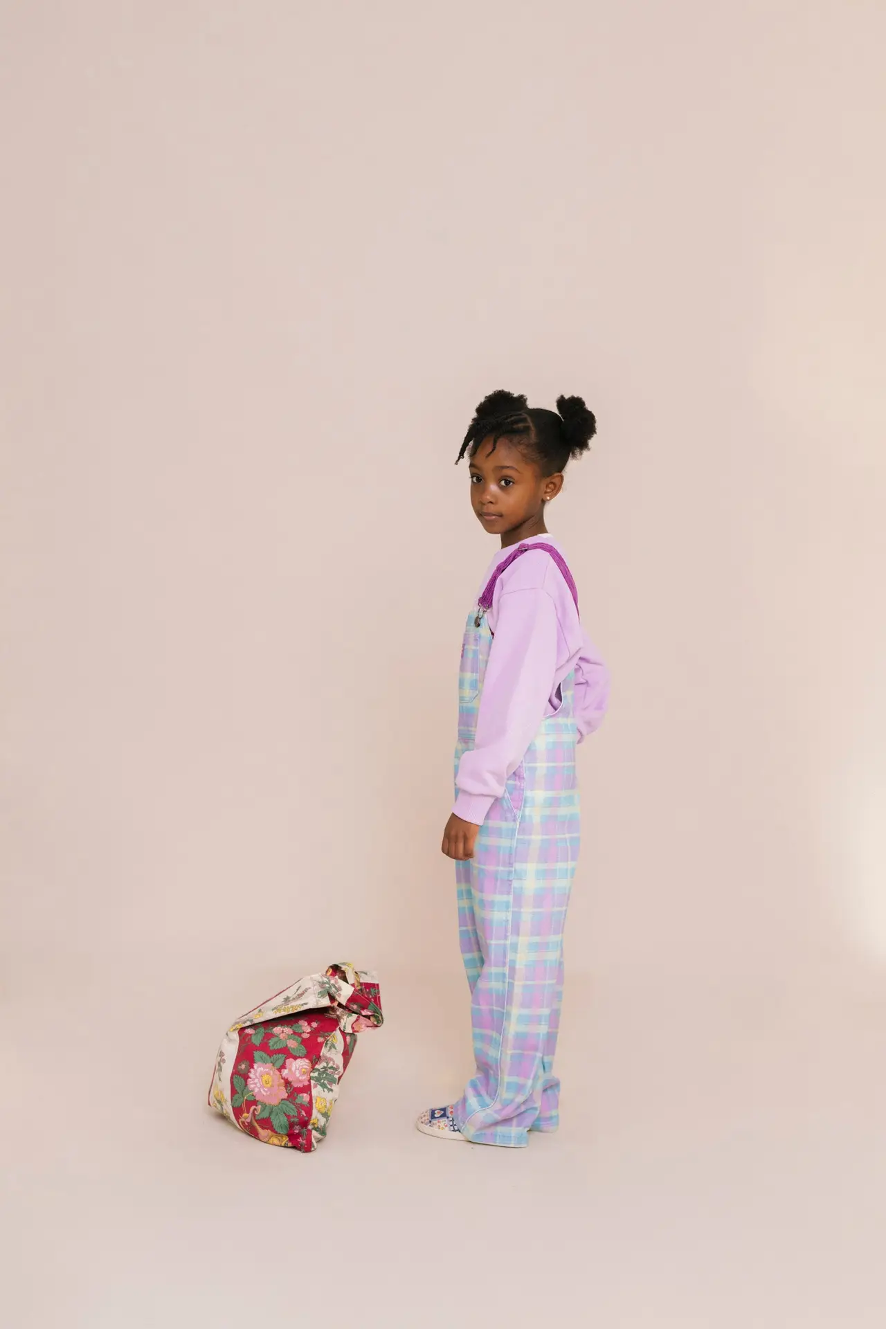 Step into the charm of Portugal with these iconic blue and purple long overalls, blending timeless style with local inspiration! Featuring a straight neckline and adjustable straps with classic dungaree closures, these overalls are designed for both comfort and a laid-back coolness. Thoughtful front and back pockets provide the perfect spot for little treasures or snacks.