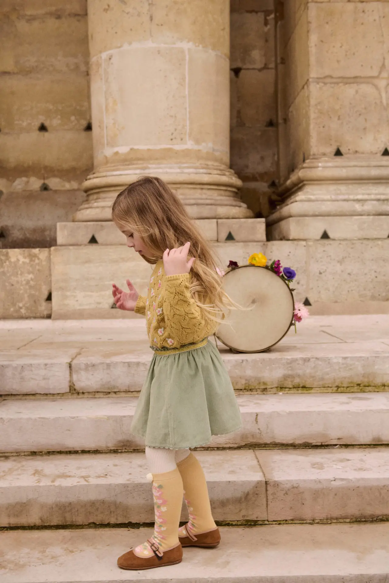 • Solid color corduroy skirt.
