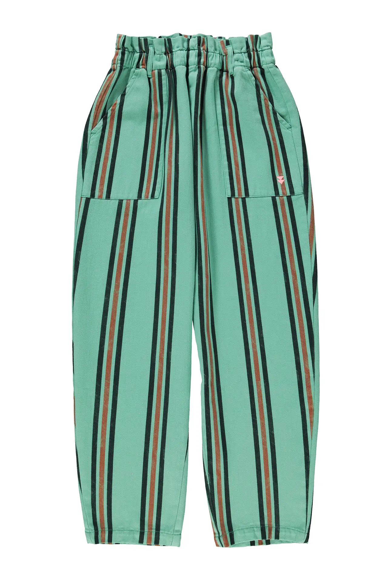 Comfortable trousers crafted from 100% cotton twill, featuring an elastic waistband, belt loops, and side pockets. Finished with decorative back pockets and an embroidered logo detail.